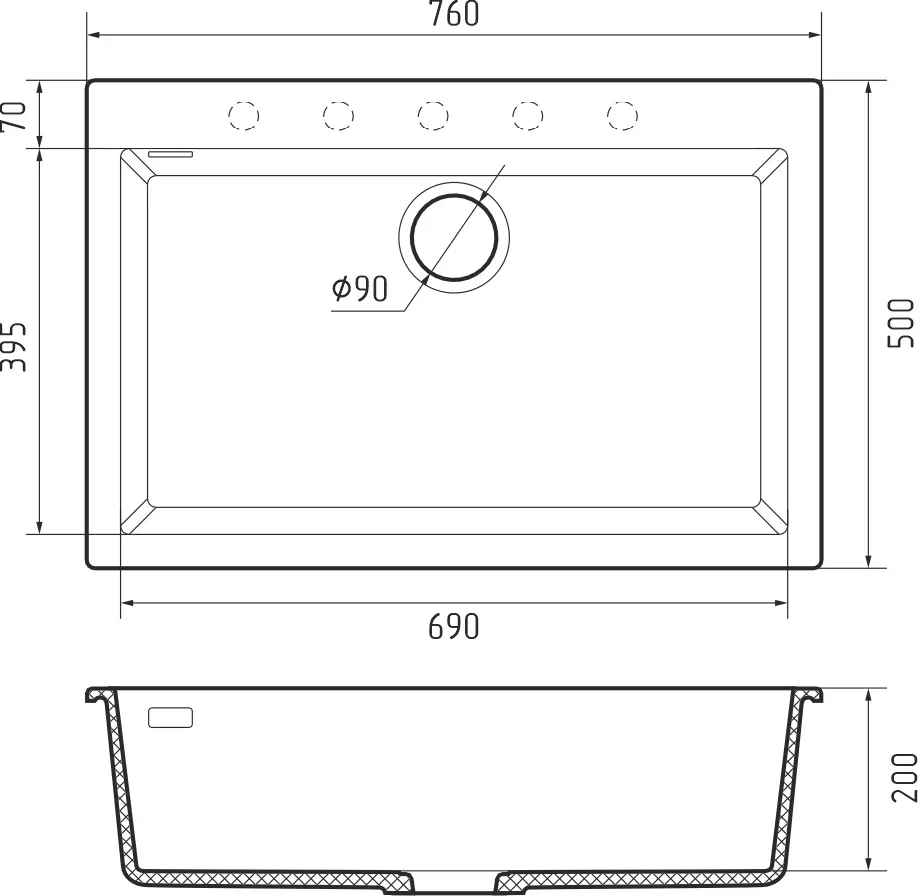 i Расстояние от дна до верхней кромки чаши мойки. Оптимальная глубина — 15-18 см. Чем глубже мойка, тем меньше брызг попадет наружу.