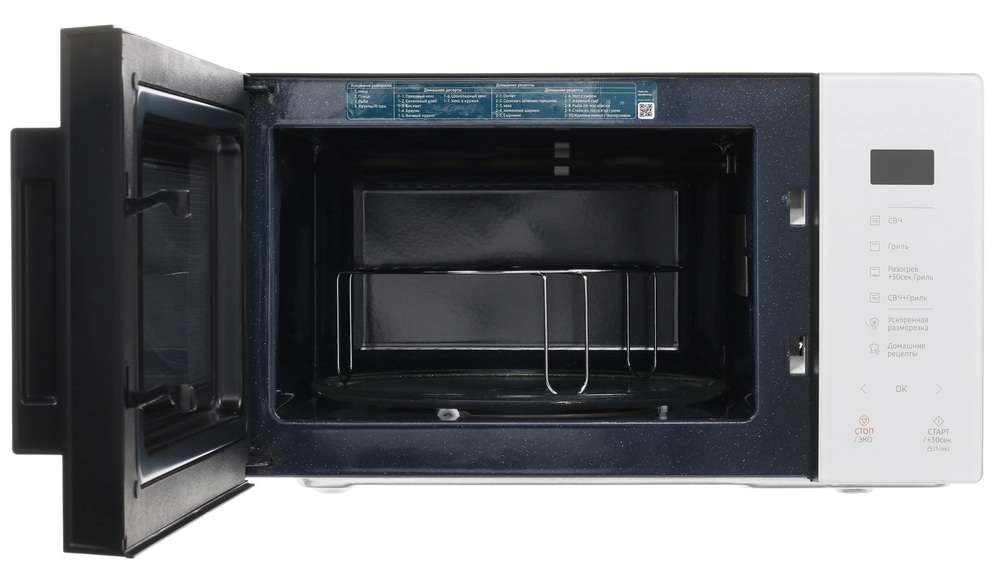 i Поворотный стол — это крутящееся блюдо в центре. Его отсутствие позволяет поместить в камеру посуду большого размера или неправильной формы.