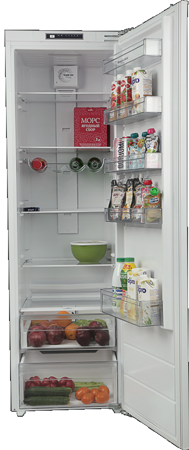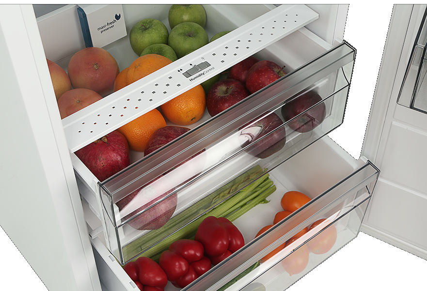i В зоне свежести температура держится на уровне 0°С, так продукты дольше остаются свежими. Подходит для свежего мяса, рыбы, фруктов, овощей.