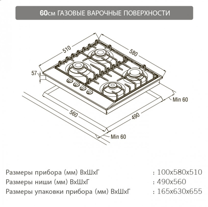 i Приборы могут имеют разное количество газовых, электрических и индукционных конфорок. Выбирайте оптимальный вариант для комфортной готовки.