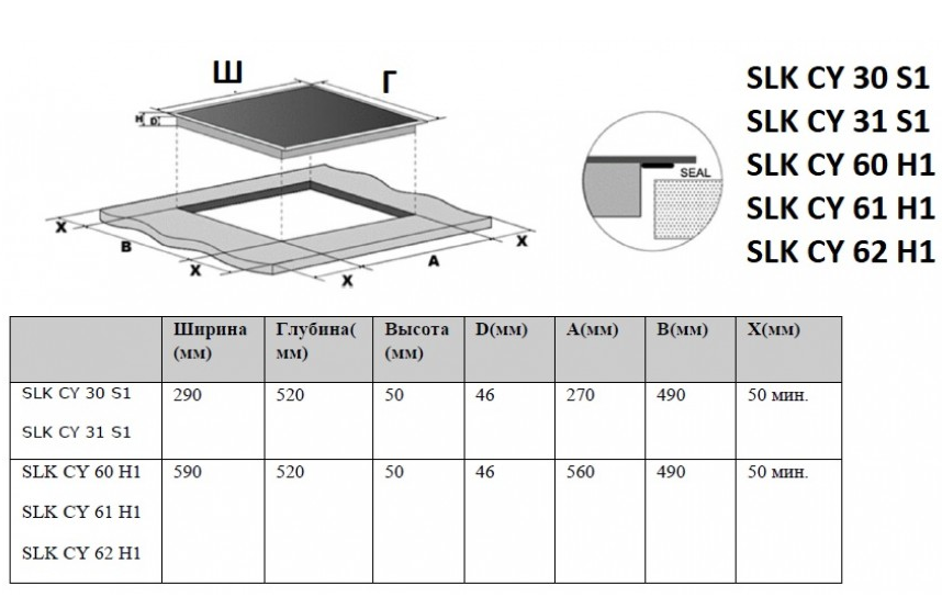 Размер ниши для встраивания в столешницу (ШхГхВ), мм