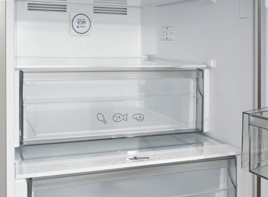 i В зоне свежести температура держится на уровне 0°С, так продукты дольше остаются свежими. Подходит для свежего мяса, рыбы, фруктов, овощей.
