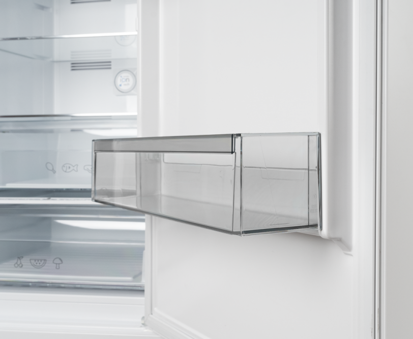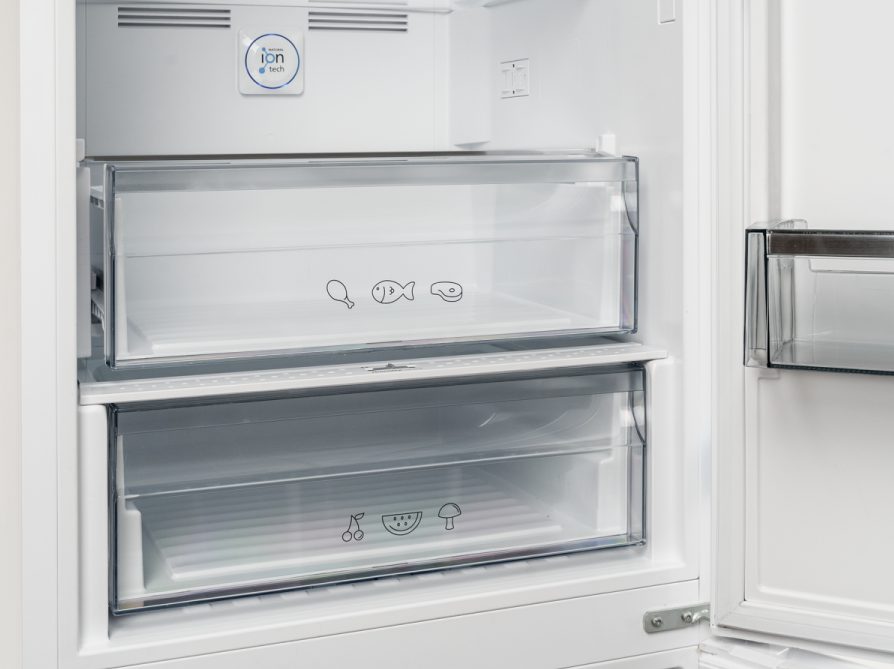 i В зоне свежести температура держится на уровне 0°С, так продукты дольше остаются свежими. Подходит для свежего мяса, рыбы, фруктов, овощей.
