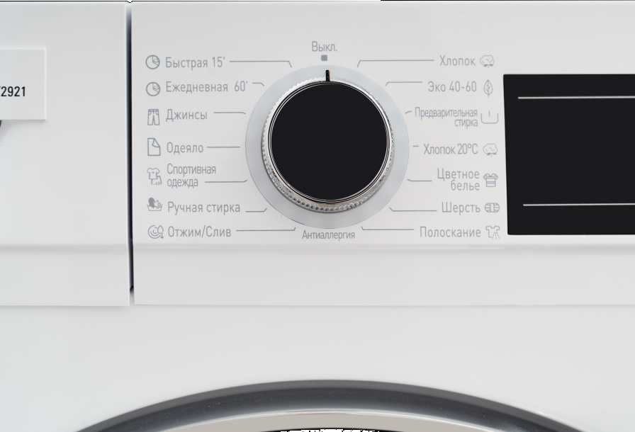 i Небольшой экран на передней панели прибора. Помогает выбирать программу, менять настройки. На дисплее выводятся сообщения об ошибке.