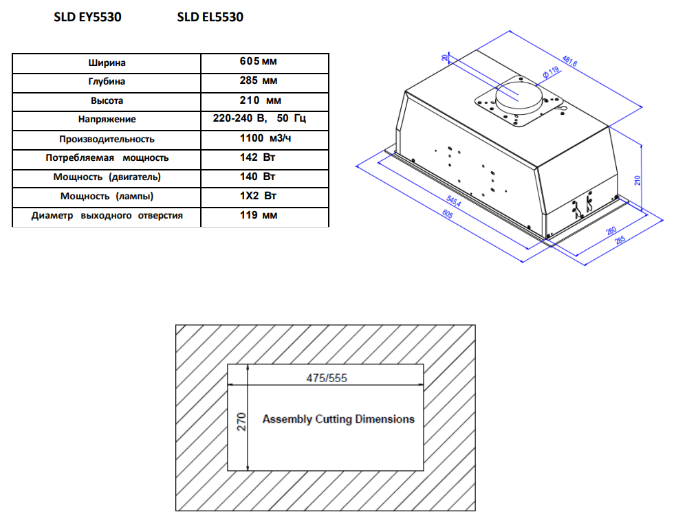 Schaub Lorenz SLD EL5530 встраиваемая вытяжка для шкафа