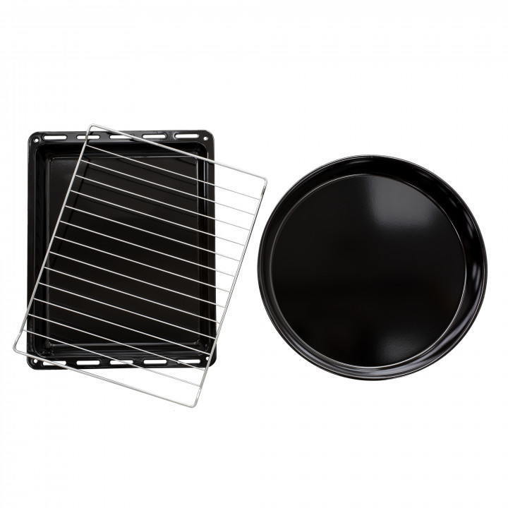 Инструкция по эксплуатации; гарантийный талон; стандартный противень с антипригарным покрытием; хромированная решётка; круглый противень с антипригарным покрытием |