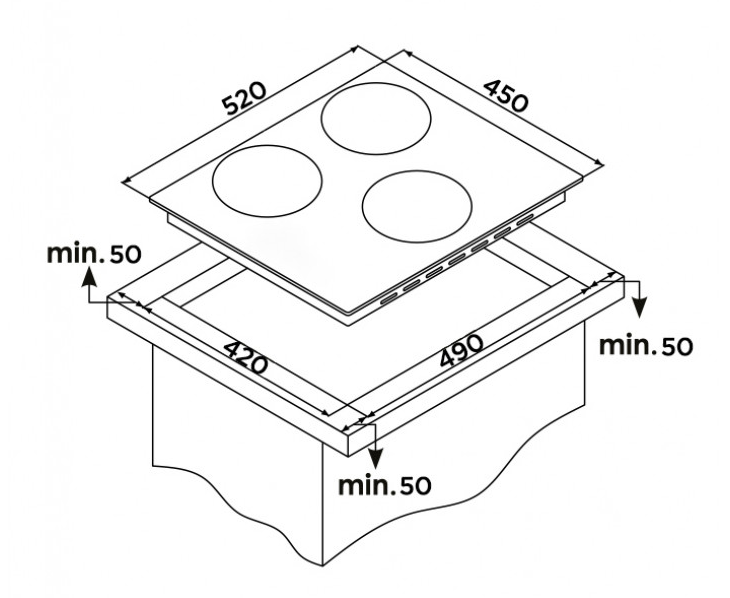 Размер ниши для встраивания в столешницу (ШхГхВ), мм