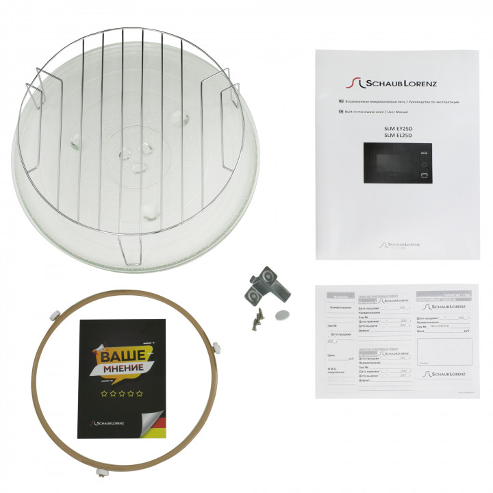 стеклянный поднос; роликовая подставка; инструкция; гарантийный талон |