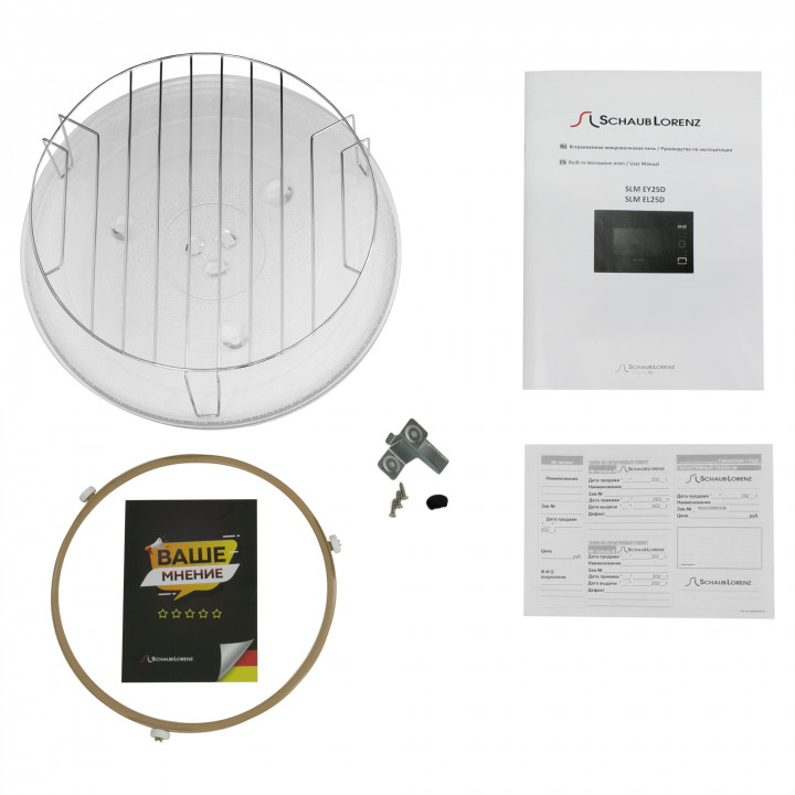 стеклянный поднос; роликовая подставка; инструкция; гарантийный талон |