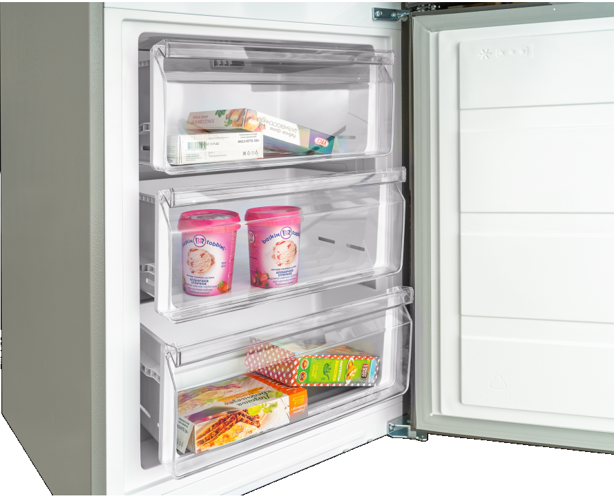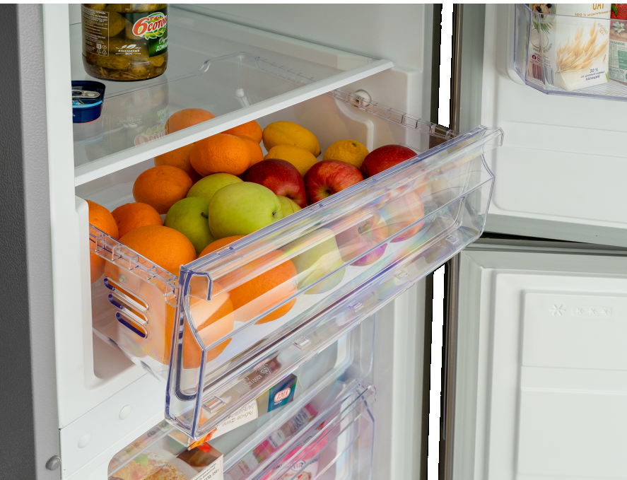 i В зоне свежести температура держится на уровне 0°С, так продукты дольше остаются свежими. Подходит для свежего мяса, рыбы, фруктов, овощей.