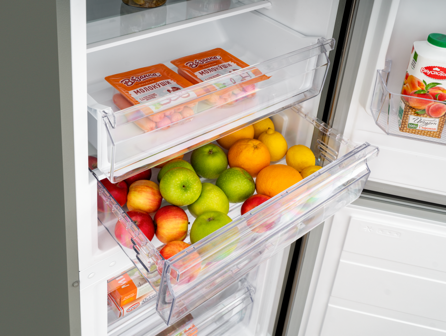 i В зоне свежести температура держится на уровне 0°С, так продукты дольше остаются свежими. Подходит для свежего мяса, рыбы, фруктов, овощей.