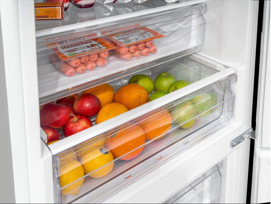 i В зоне свежести температура держится на уровне 0°С, так продукты дольше остаются свежими. Подходит для свежего мяса, рыбы, фруктов, овощей.