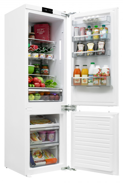 i В зоне свежести температура держится на уровне 0°С, так продукты дольше остаются свежими. Подходит для свежего мяса, рыбы, фруктов, овощей.