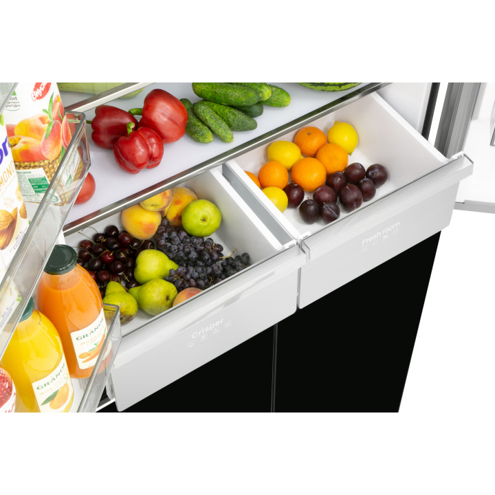 i В зоне свежести температура держится на уровне 0°С, так продукты дольше остаются свежими. Подходит для свежего мяса, рыбы, фруктов, овощей.