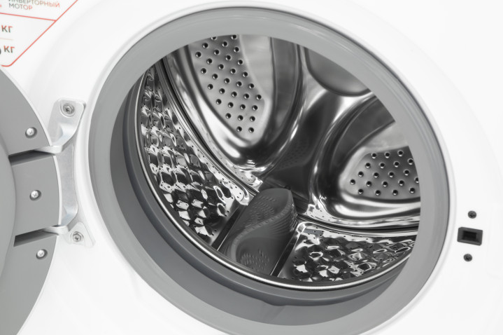 i Двигатель соединяется с барабаном напрямую. Конструкция снижает уровень шума и не включает часто изнашивающиеся шкивы и приводной ремень.