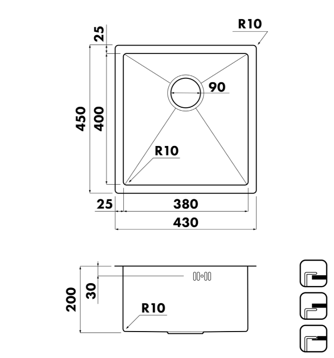 i Определяет расположение крыла мойки. Выбирая вариант исполнения мойки, нужно учитывать особенности кухонного гарнитура.