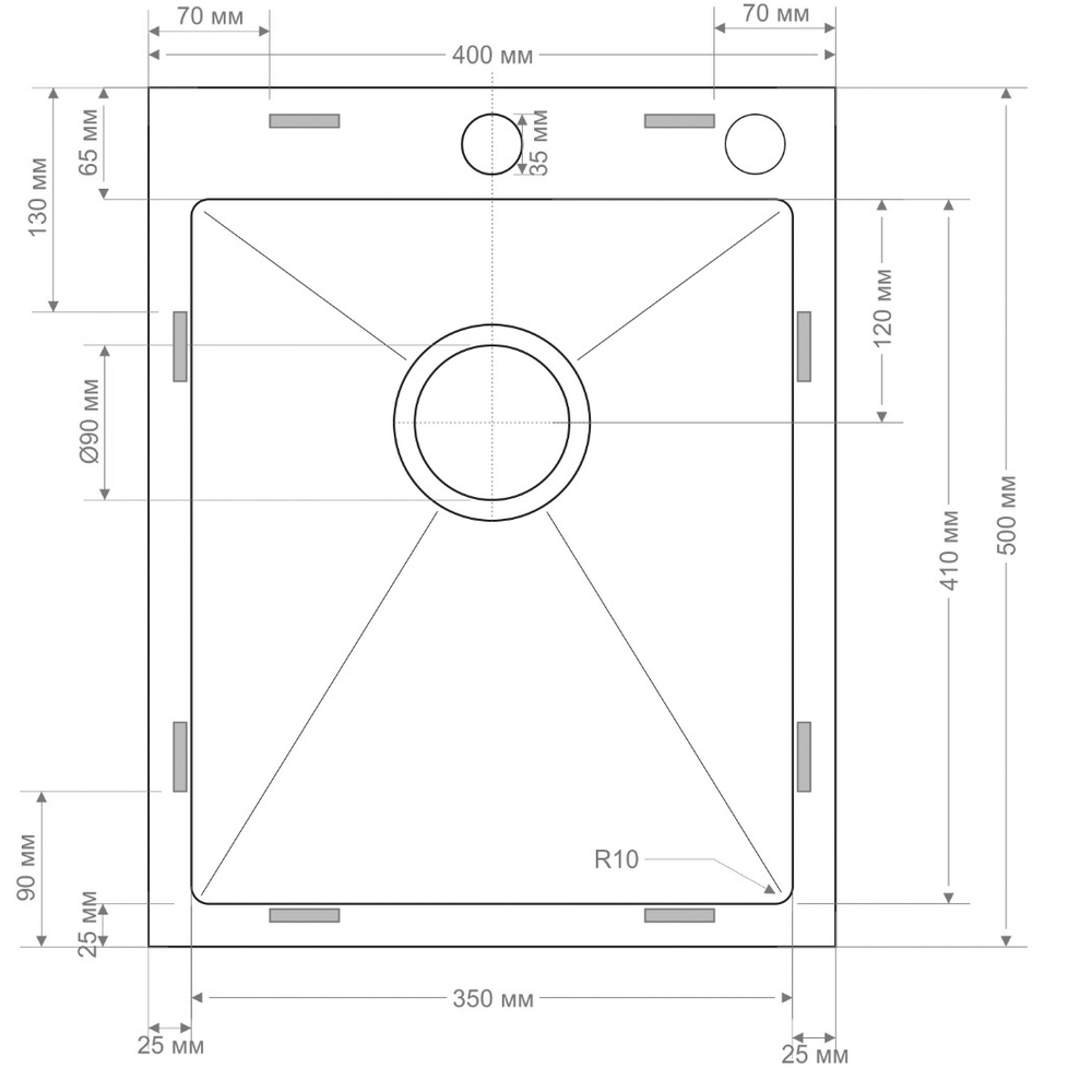 i Расстояние от дна до верхней кромки чаши мойки. Оптимальная глубина — 15-18 см. Чем глубже мойка, тем меньше брызг попадет наружу.