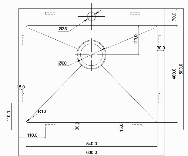 i Расстояние от дна до верхней кромки чаши мойки. Оптимальная глубина — 15-18 см. Чем глубже мойка, тем меньше брызг попадет наружу.