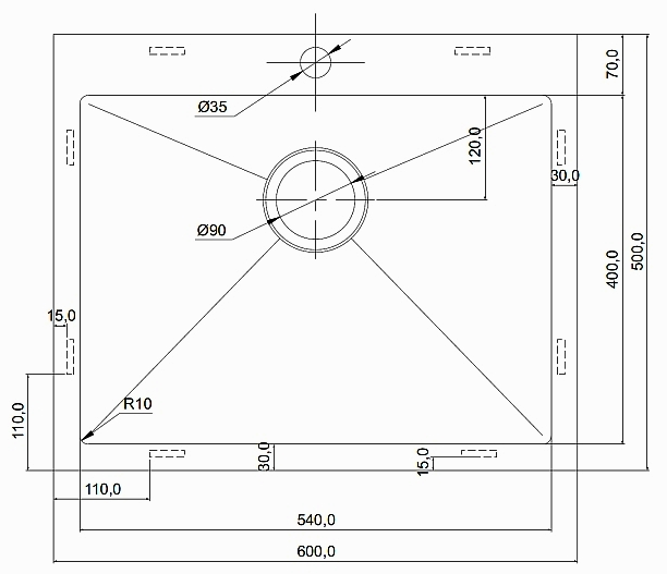 i Расстояние от дна до верхней кромки чаши мойки. Оптимальная глубина — 15-18 см. Чем глубже мойка, тем меньше брызг попадет наружу.