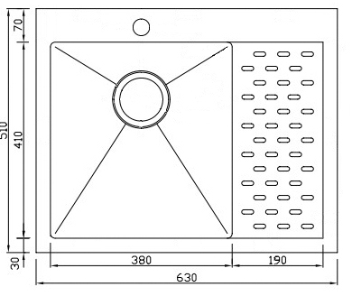 i Расстояние от дна до верхней кромки чаши мойки. Оптимальная глубина — 15-18 см. Чем глубже мойка, тем меньше брызг попадет наружу.
