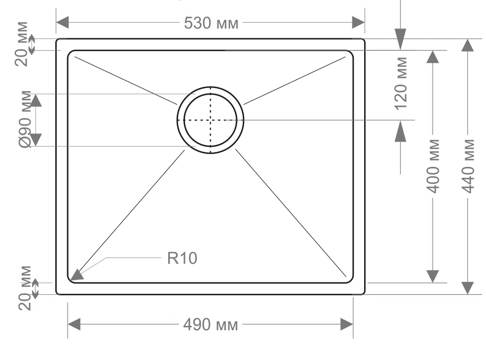 i Расстояние от дна до верхней кромки чаши мойки. Оптимальная глубина — 15-18 см. Чем глубже мойка, тем меньше брызг попадет наружу.