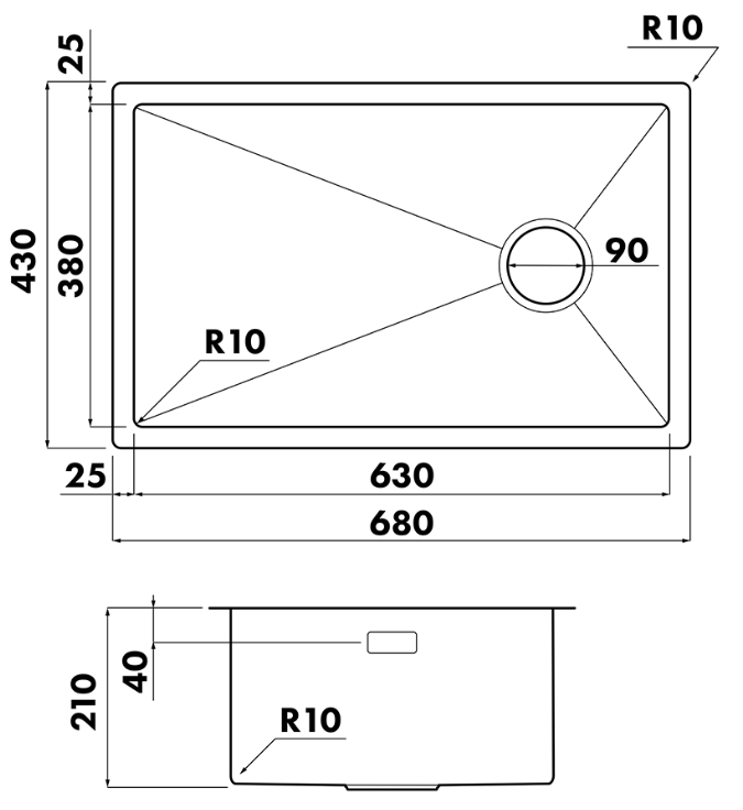 i Расстояние от дна до верхней кромки чаши мойки. Оптимальная глубина — 15-18 см. Чем глубже мойка, тем меньше брызг попадет наружу.