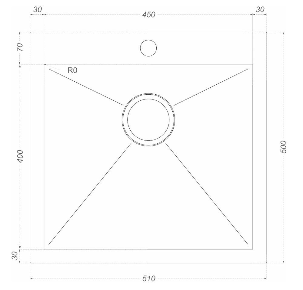 i Расстояние от дна до верхней кромки чаши мойки. Оптимальная глубина — 15-18 см. Чем глубже мойка, тем меньше брызг попадет наружу.
