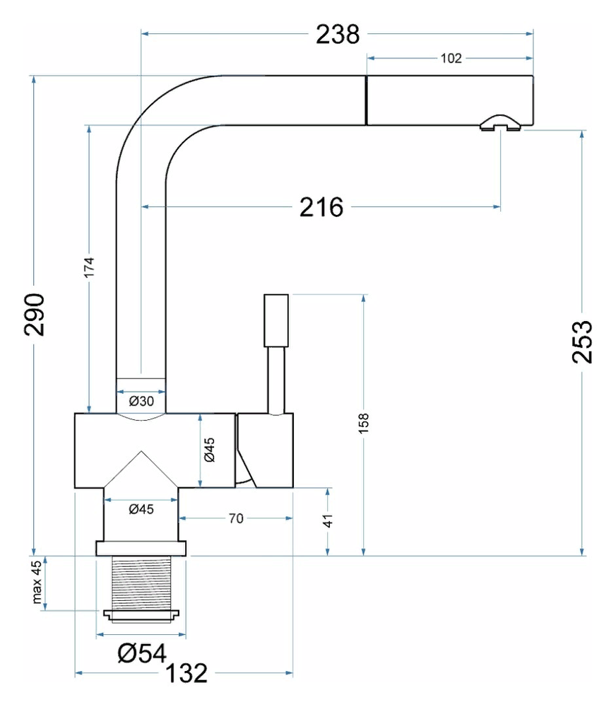 i Встроенная в кран насадка на длинном гибком шланге с металлической оплеткой. Насадки с кнопкой могут переключать обычный излив воды на душ.