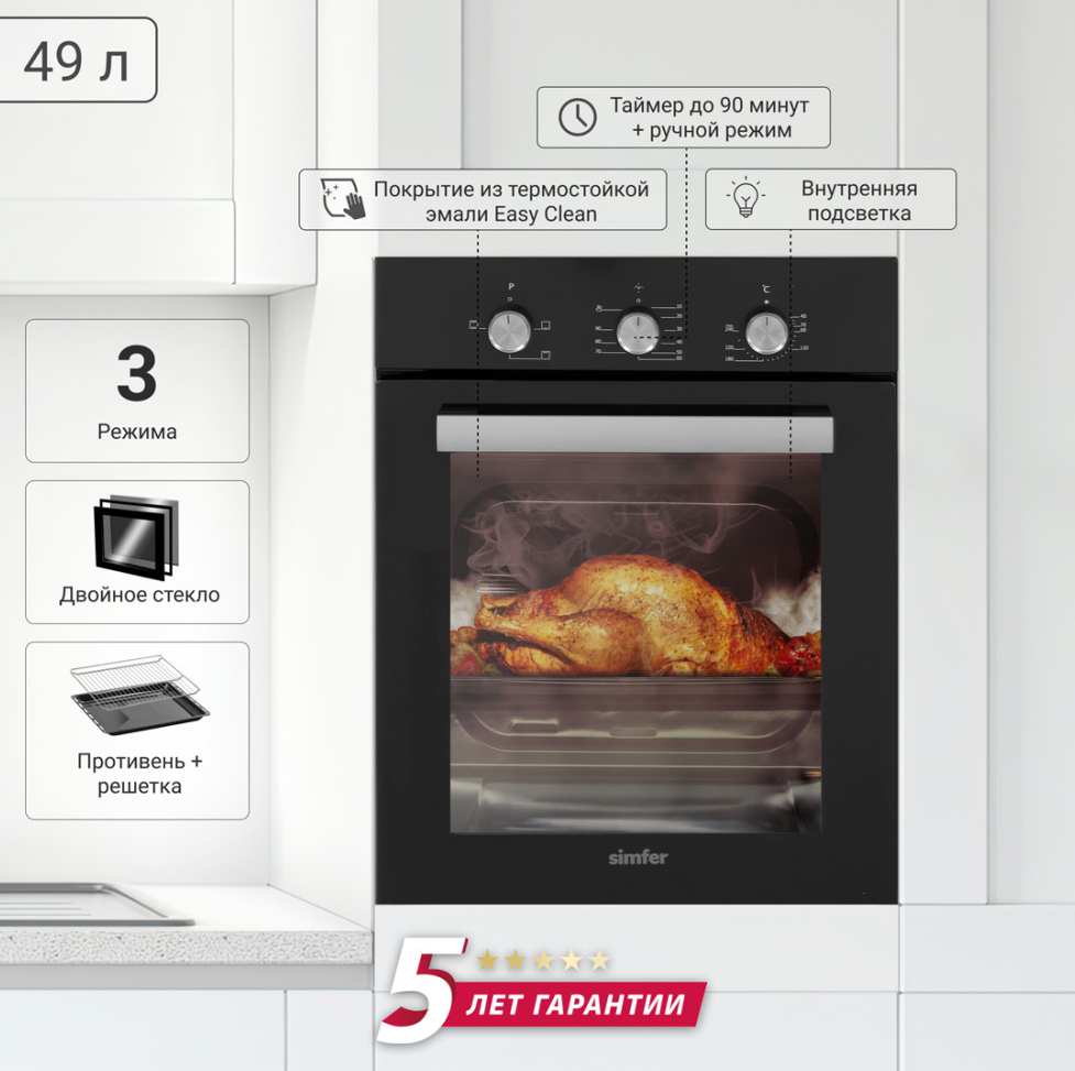 i Полезный объем камеры прибора, который может быть использован для приготовления. Духовки с объемом <50 л рассчитаны на семьи из 2-4 человек.