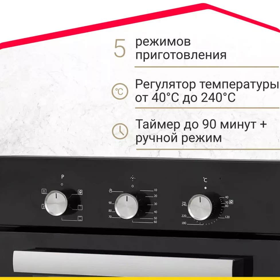 i Полезный объем камеры прибора, который может быть использован для приготовления. Духовки с объемом <50 л рассчитаны на семьи из 2-4 человек.