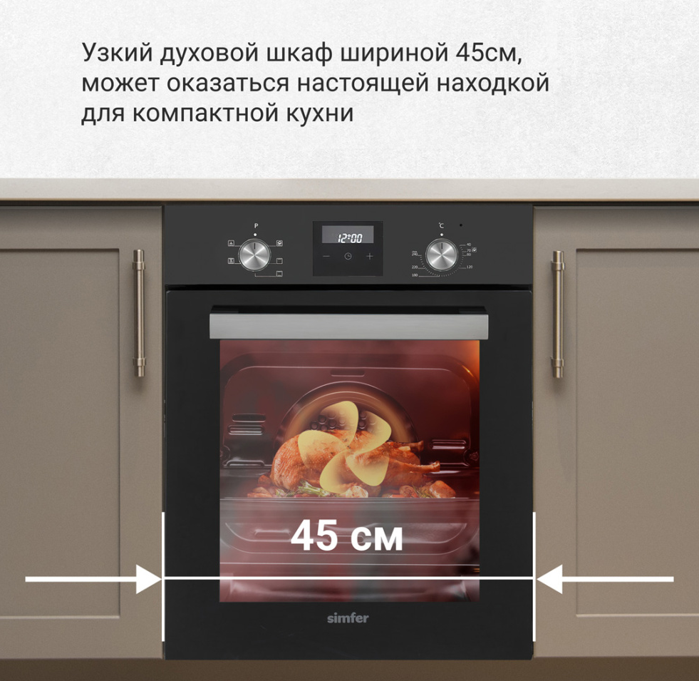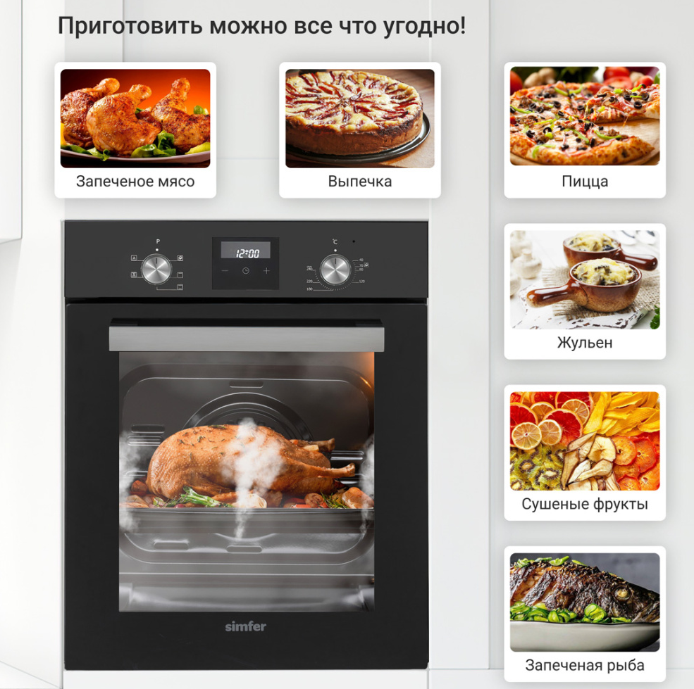 i Предполагает наличие встроенного вентилятора, который обеспечивает равномерное запекание благодаря непрерывной циркуляции горячего воздуха.