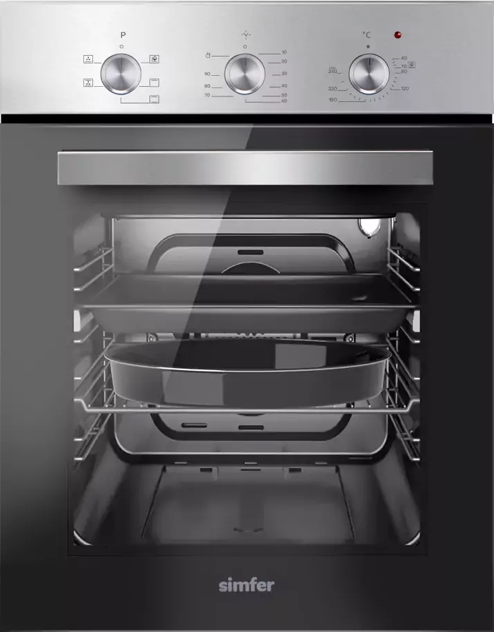 i У духового шкафа может быть газовый или электрический тип питания. Газовые духовки экономичнее, а электрические имеют больше режимов работы.