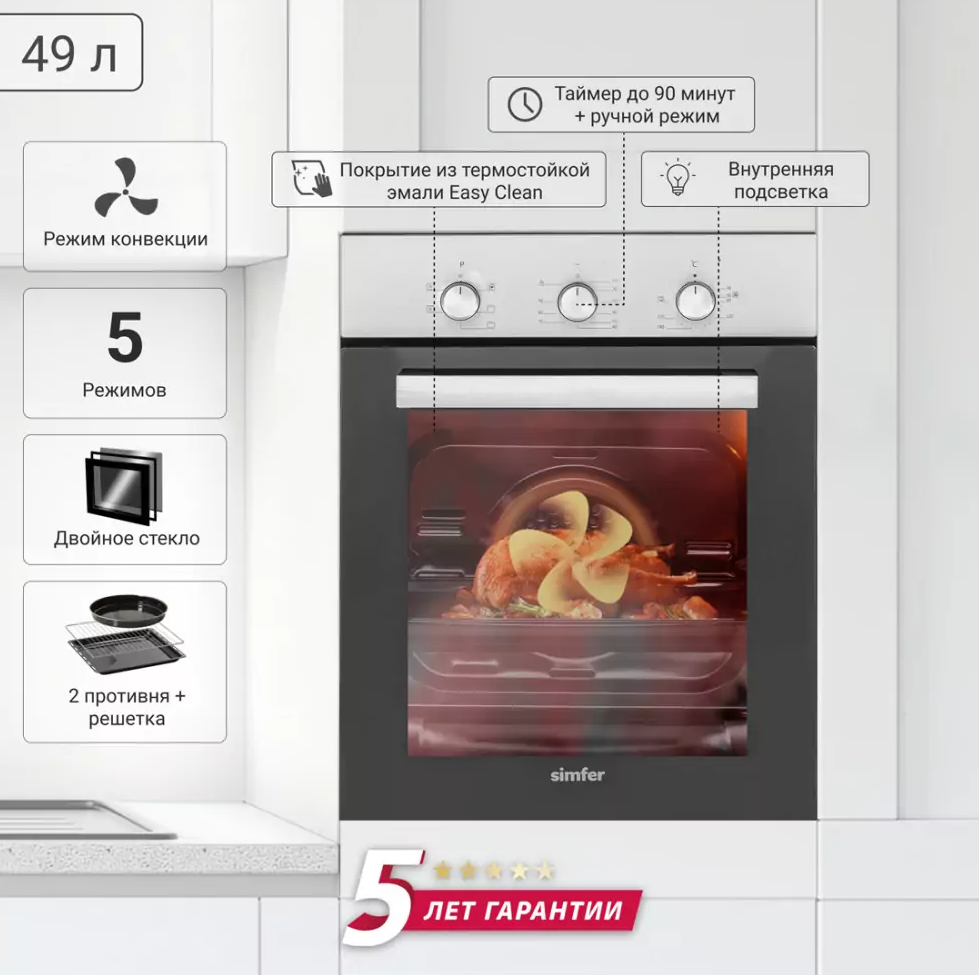 i Предполагает наличие встроенного вентилятора, который обеспечивает равномерное запекание благодаря непрерывной циркуляции горячего воздуха.