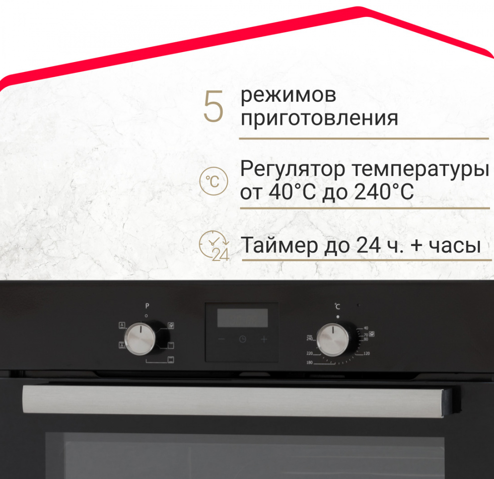 i У духового шкафа может быть газовый или электрический тип питания. Газовые духовки экономичнее, а электрические имеют больше режимов работы.