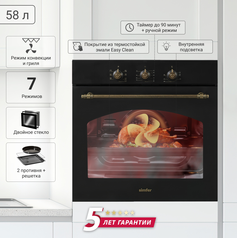 i Предполагает наличие встроенного вентилятора, который обеспечивает равномерное запекание благодаря непрерывной циркуляции горячего воздуха.