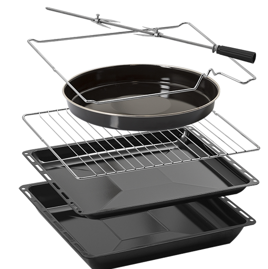 i Выдвижные металлические полозья, которые легко выезжают за пределы камеры духовки вместе с противнем, не давая ему упасть.