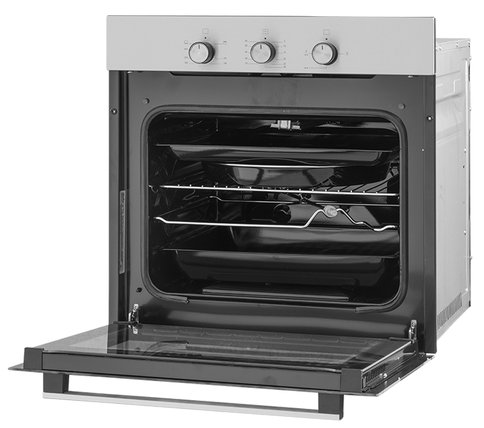 i У духового шкафа может быть газовый или электрический тип питания. Газовые духовки экономичнее, а электрические имеют больше режимов работы.