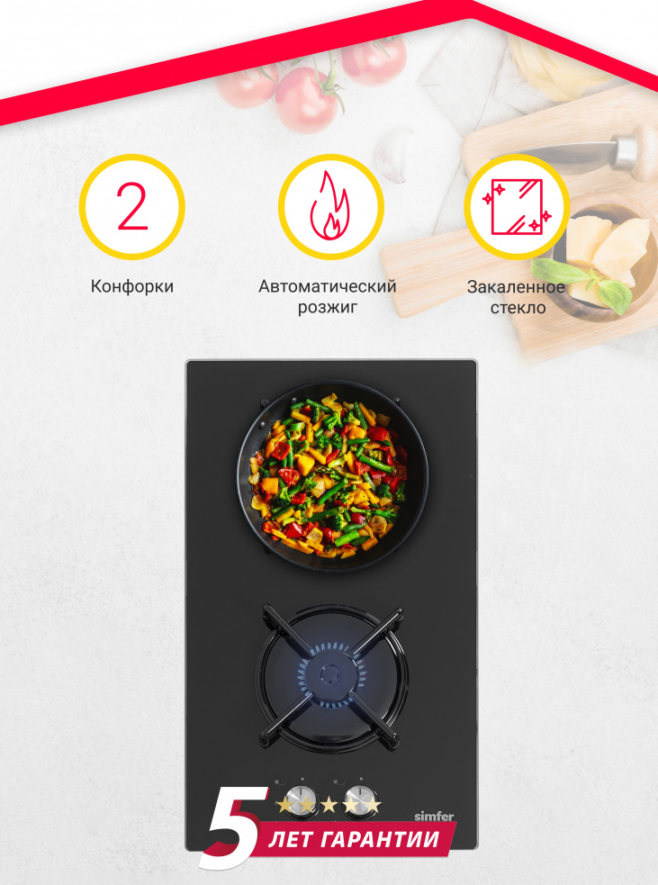 i Приборы могут имеют разное количество газовых, электрических и индукционных конфорок. Выбирайте оптимальный вариант для комфортной готовки.