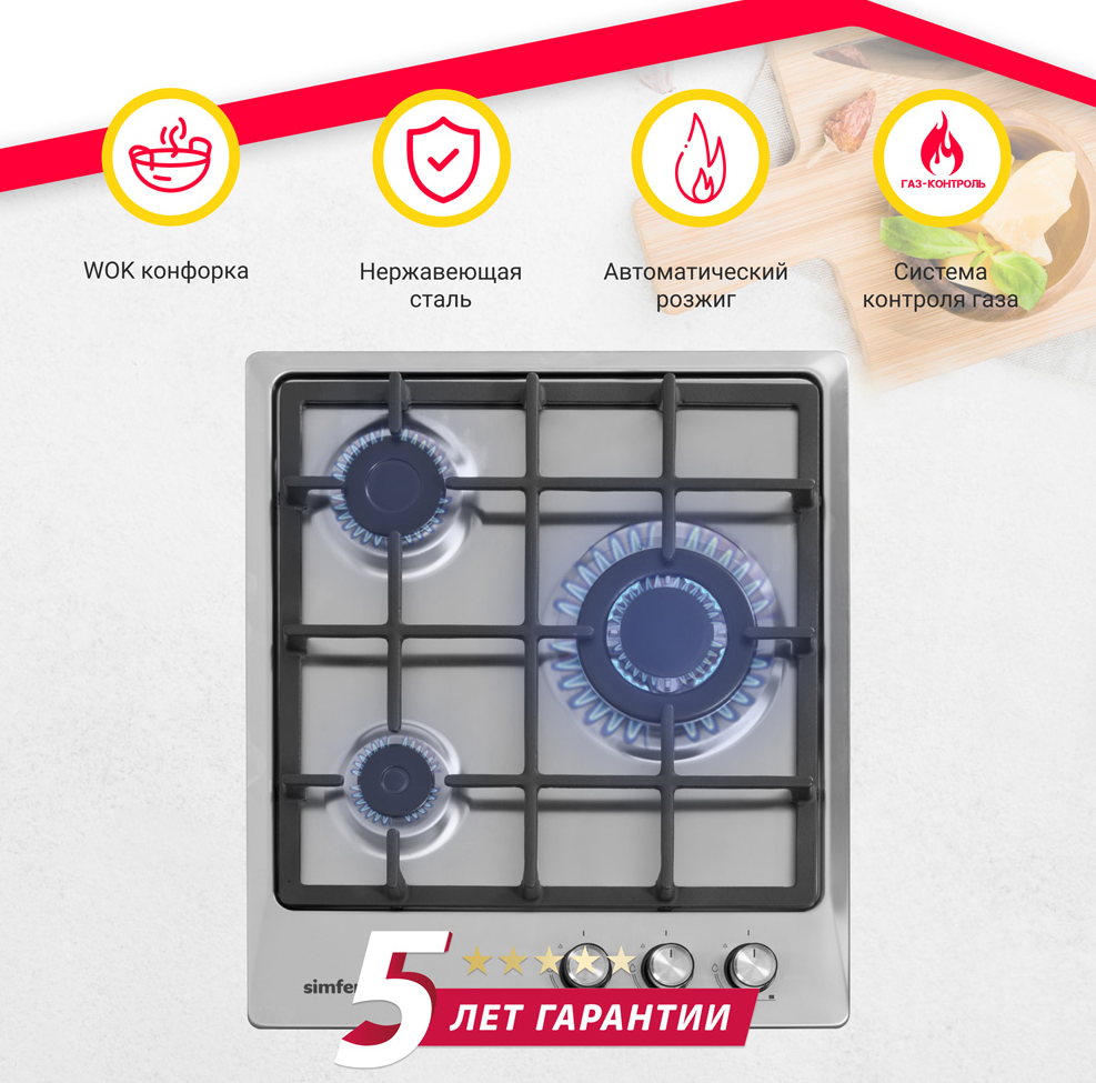 i Приборы могут имеют разное количество газовых, электрических и индукционных конфорок. Выбирайте оптимальный вариант для комфортной готовки.