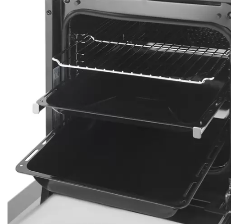 i Выдвижные металлические полозья, которые легко выезжают за пределы камеры духовки вместе с противнем, не давая ему упасть.