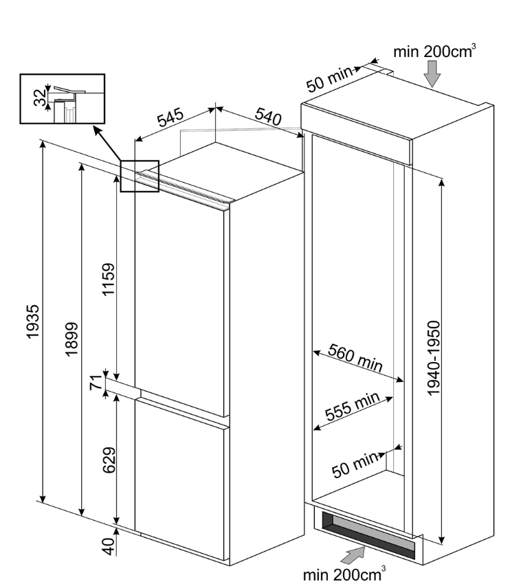 Smeg C8194TNE двухкамерный холодильник встраиваемый