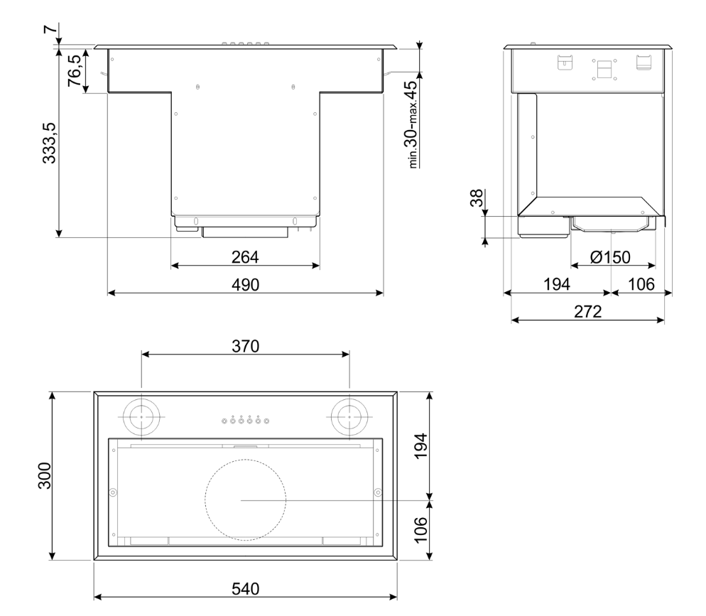 Smeg KSEG58PXE встраиваемая вытяжка для шкафа