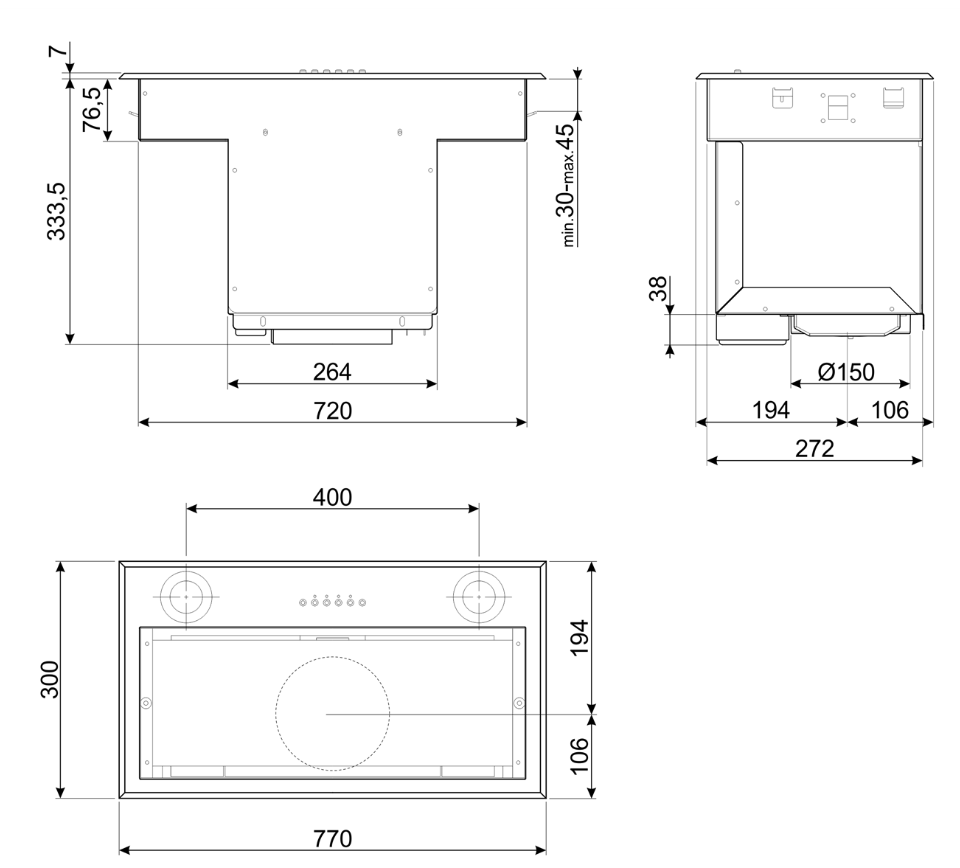 Smeg KSEG78PXE встраиваемая вытяжка для шкафа