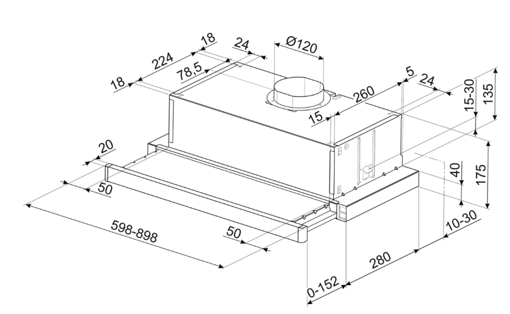 Smeg KSET61E2 встраиваемая вытяжка телескопическая