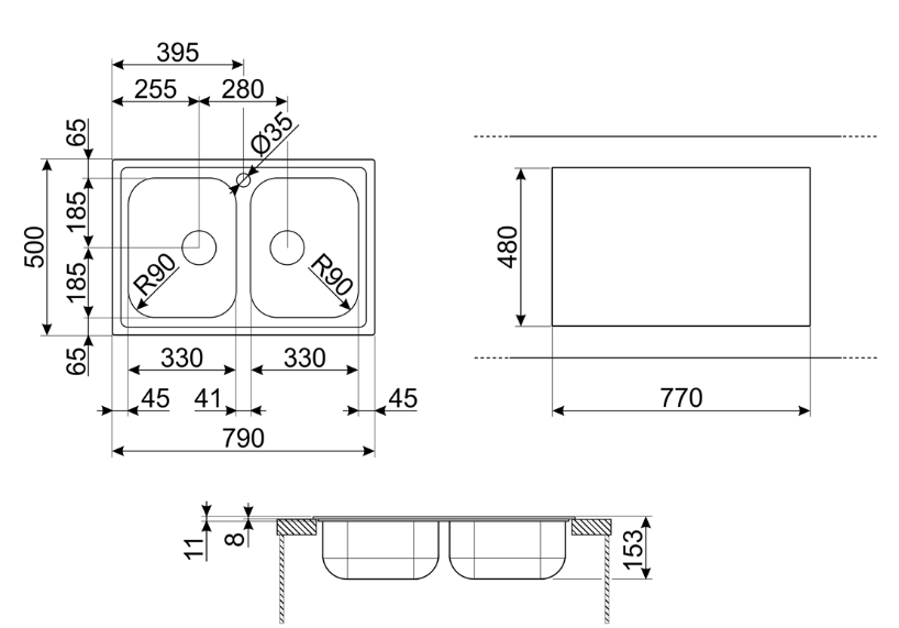 Размеры мойки