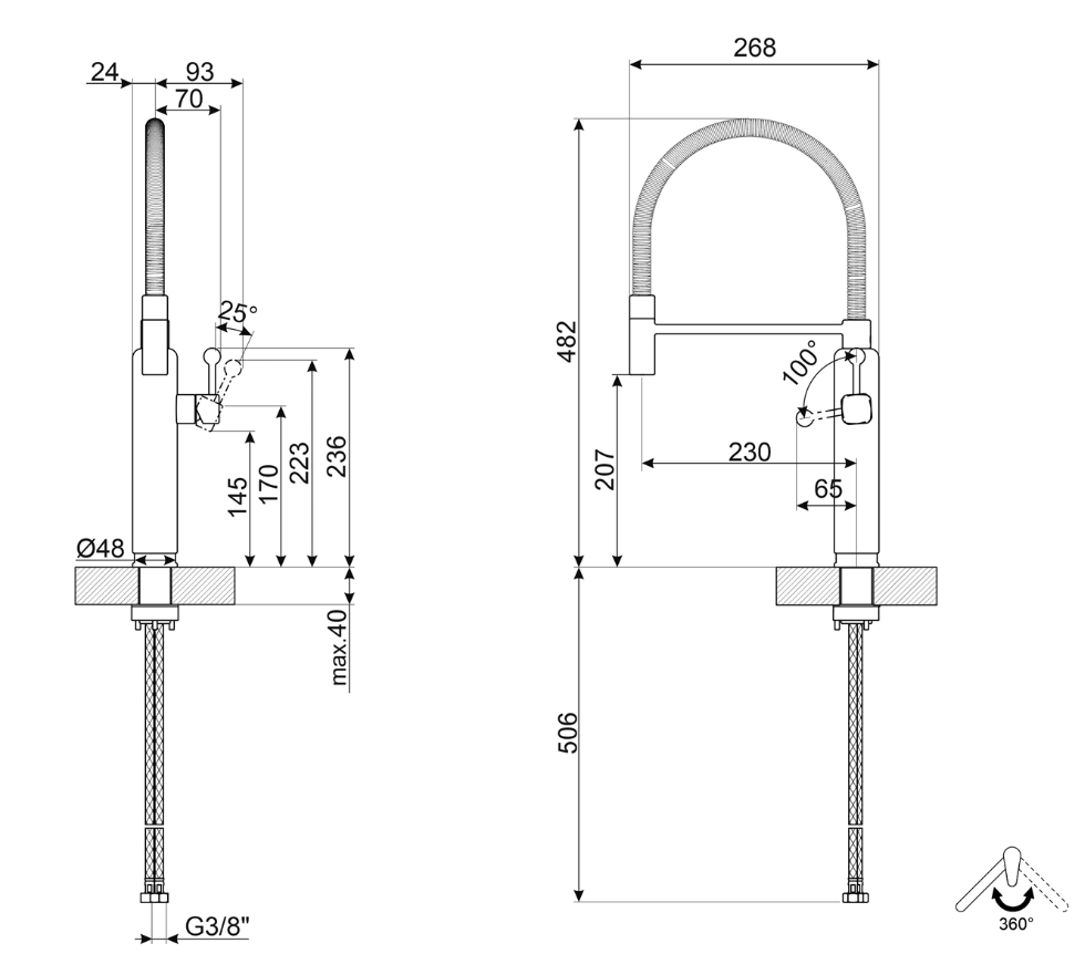 i Встроенная в кран насадка на длинном гибком шланге с металлической оплеткой. Насадки с кнопкой могут переключать обычный излив воды на душ.