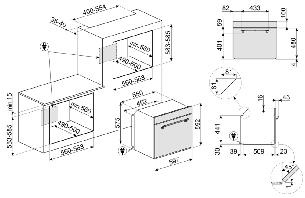 i Ширина корпуса электроприбора. Особенно важно точно знать точную допустимую ширину для встраиваемой техники.