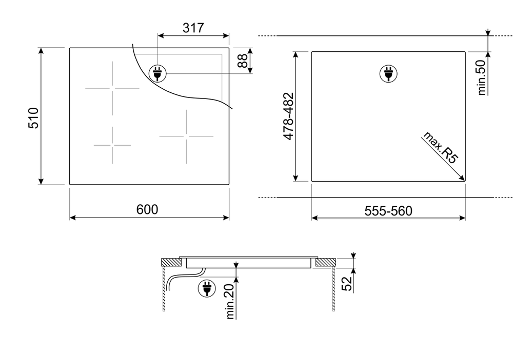 i На варочной поверхности может быть от 2 до 8 электрических конфорок с индукционным нагревом. Для них нужна специальная посуда.