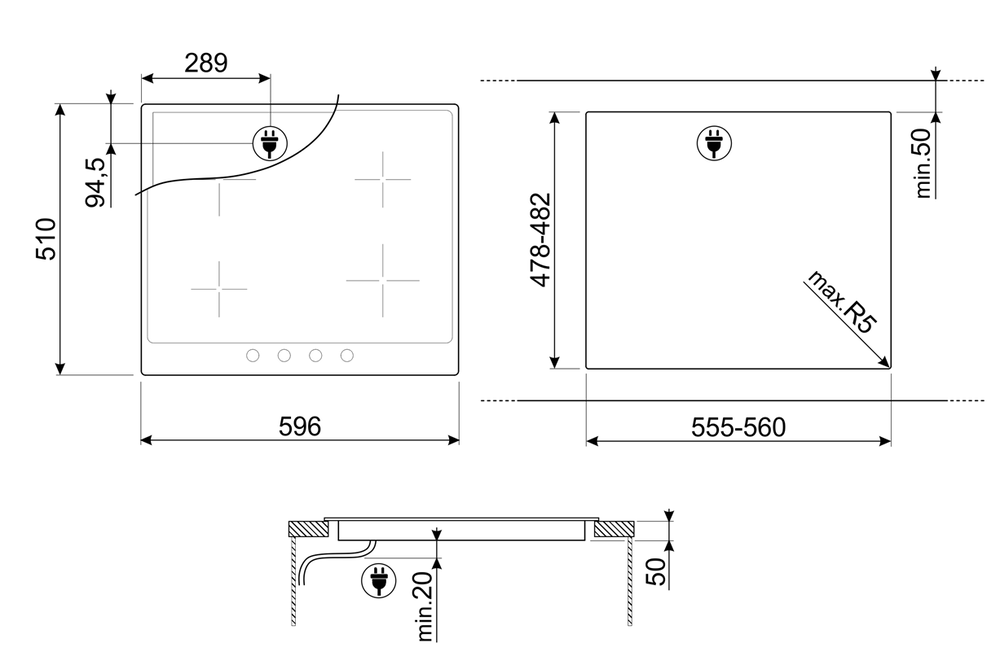 i Материал, из которого изготовлена варочная поверхность, или тип энергии, который используется для ее работы.
