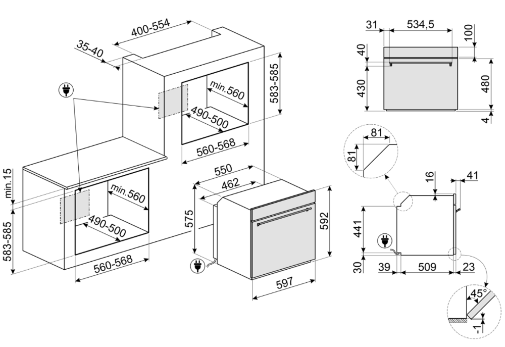 i Ширина корпуса электроприбора. Особенно важно точно знать точную допустимую ширину для встраиваемой техники.